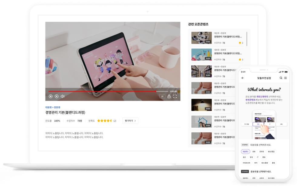 자체 콘텐츠 관리 및 학습 기능